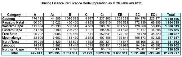 南非 eNATIS 駕照人數(shù)統(tǒng)計(jì)(2017 年 3 月)