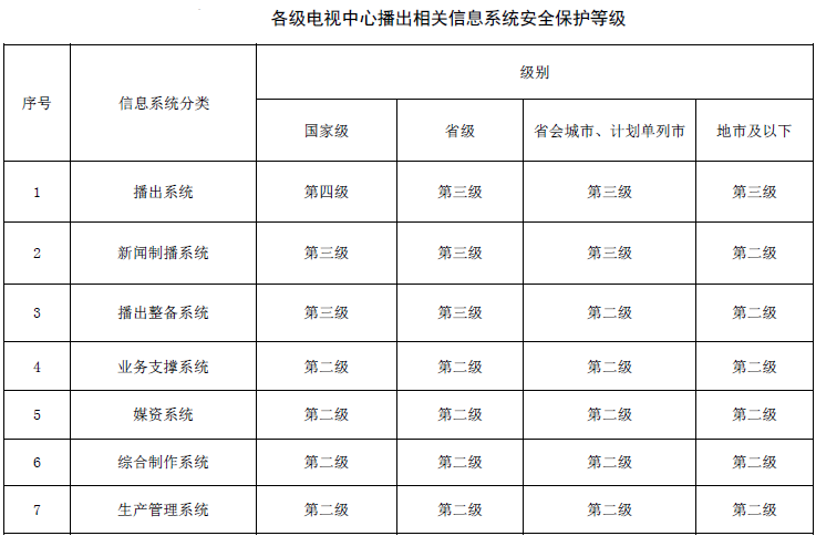 需要特殊說明的是,滿足基本安全防護(hù)要求是保證信息系統(tǒng)具有相應(yīng)等級(jí)安全保護(hù)能力的前提。但針對(duì)于不同的播出單位來說,廣播電視相關(guān)信息系統(tǒng)是一個(gè)整體,除了分層面采取各種安全措施,還應(yīng)從播出單位信息系統(tǒng)的業(yè)務(wù)特殊性等方面考慮總體性要求,保證信息系統(tǒng)的整體安全保護(hù)能力。